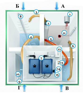 • Корпус станции обладает полной герметичностью и высокой механической прочностью. Установка очень долговечна, т.к. корпус выполнен из не подверженного коррозии полипропилена.